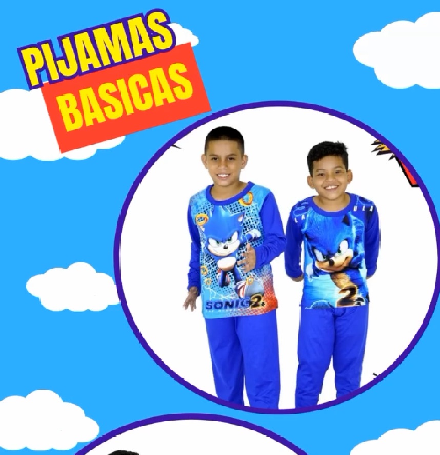 Pijama básica infantil con diseño exclusivo de Sonic 2. Conjunto de camiseta manga larga y pantalón, ideal para noches cómodas y llenas de aventura. Estampado vibrante con fondo azul y detalles del personaje favorito de los niños.